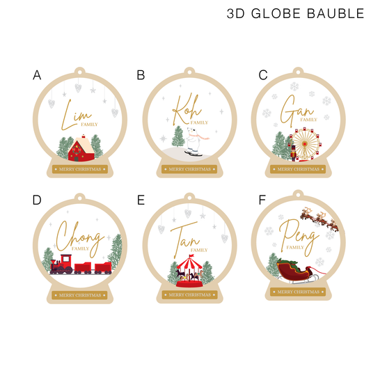 Christmas Bauble Ornament - Personalized 3D Christmas Globe (6 Designs)