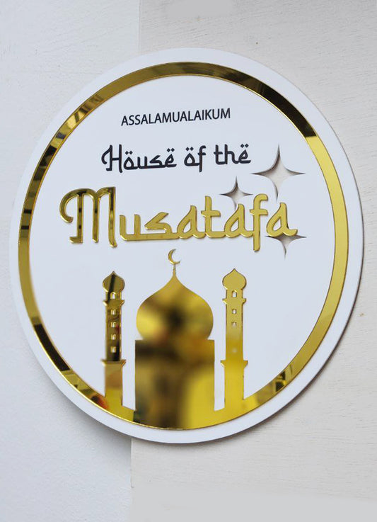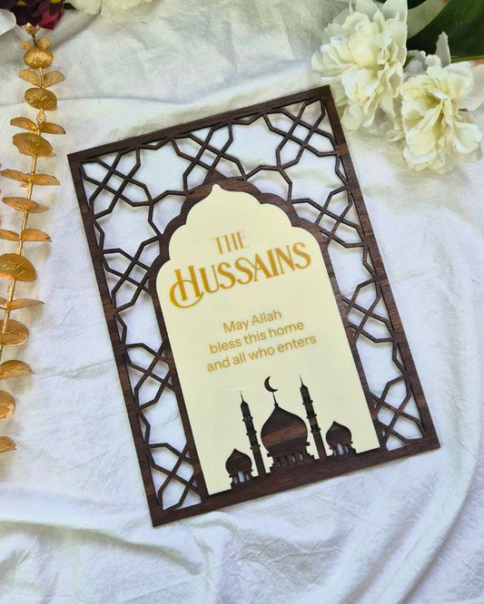 Hari Raya Emblem - Masjid Silhouette Home Family Name Sign