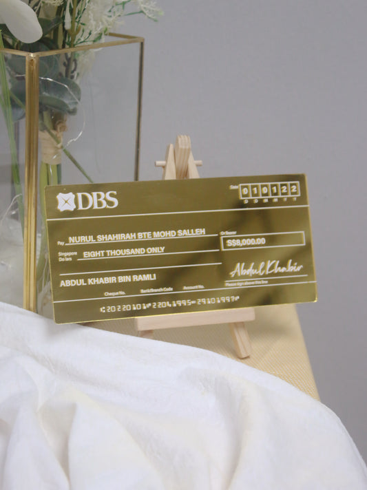 Mock Cheque Hantaran - Gold Mirror (Engraved) Acrylic Mock up Cheque
