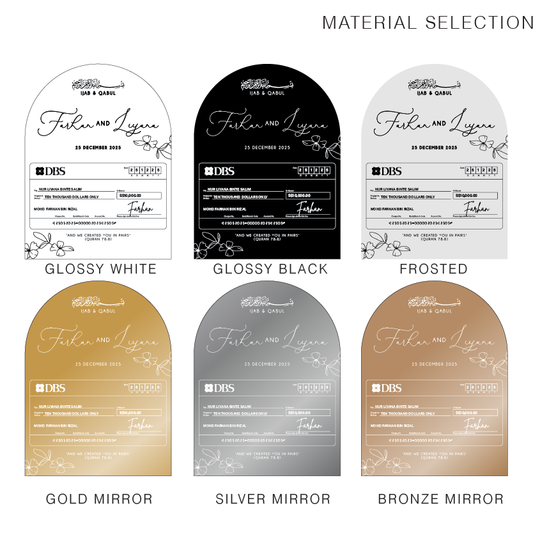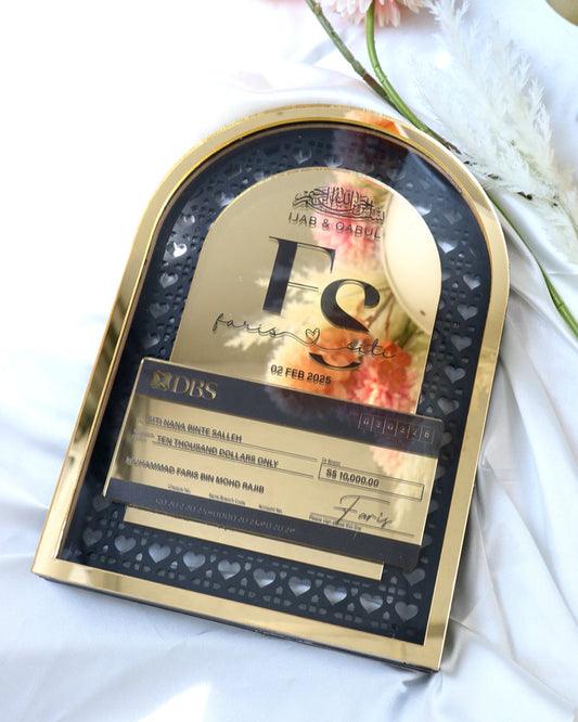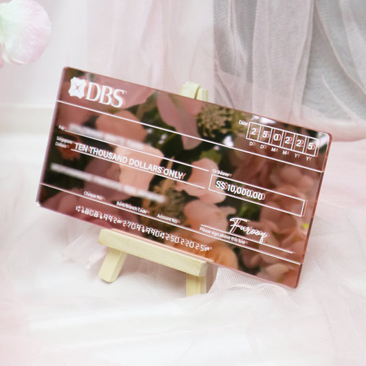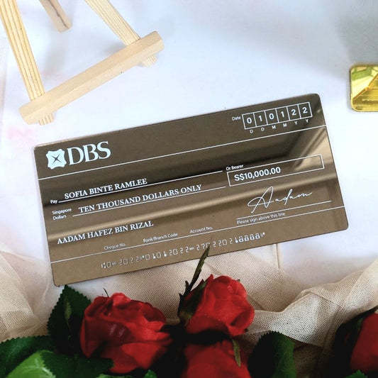 Make your hantaran presentation extra special with a personalized mock cheque! Crafted in Singapore. Custom-designed with names, amounts, and special messages, it's a unique and creative way to celebrate engagements, weddings, and gift-giving traditions.