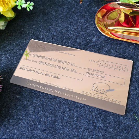 Mock Cheque Hantaran - Bronze Mirror (Engraved) Acrylic Mock up Cheque