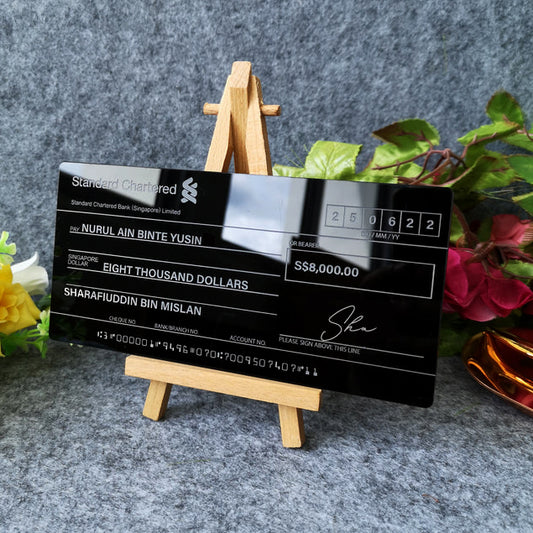 Make your hantaran presentation extra special with a personalized mock cheque! Crafted in Singapore. Custom-designed with names, amounts, and special messages, it's a unique and creative way to celebrate engagements, weddings, and gift-giving traditions.