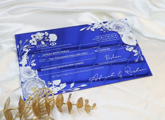 Mock Cheque Hantaran - Blue Mirror (White Printed Text)