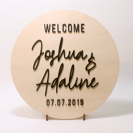 Wedding Welcome Sign - Round Signage Wood 3D Lettering