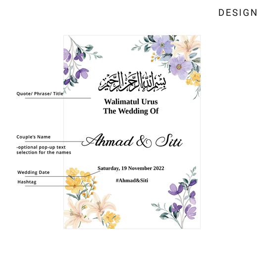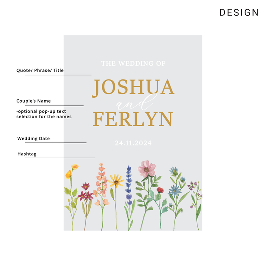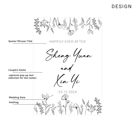 Discover elegant wedding welcome signs in Singapore! Custom-designed to add a personal touch to your special day. Tailored wedding welcome sign to endure for years, guaranteeing that your cherished memories will last a lifetime.